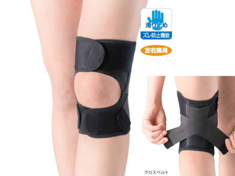 ・膝裏に配置したクッションパッドが屈曲時の膝関節を支え、クロスベルトで膝関節が伸びすぎないようにサポート